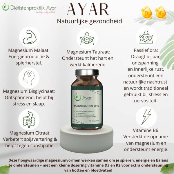 Ayar Magnesium 200mg – Krachtige ondersteuning voor spieren, zenuwen en energie